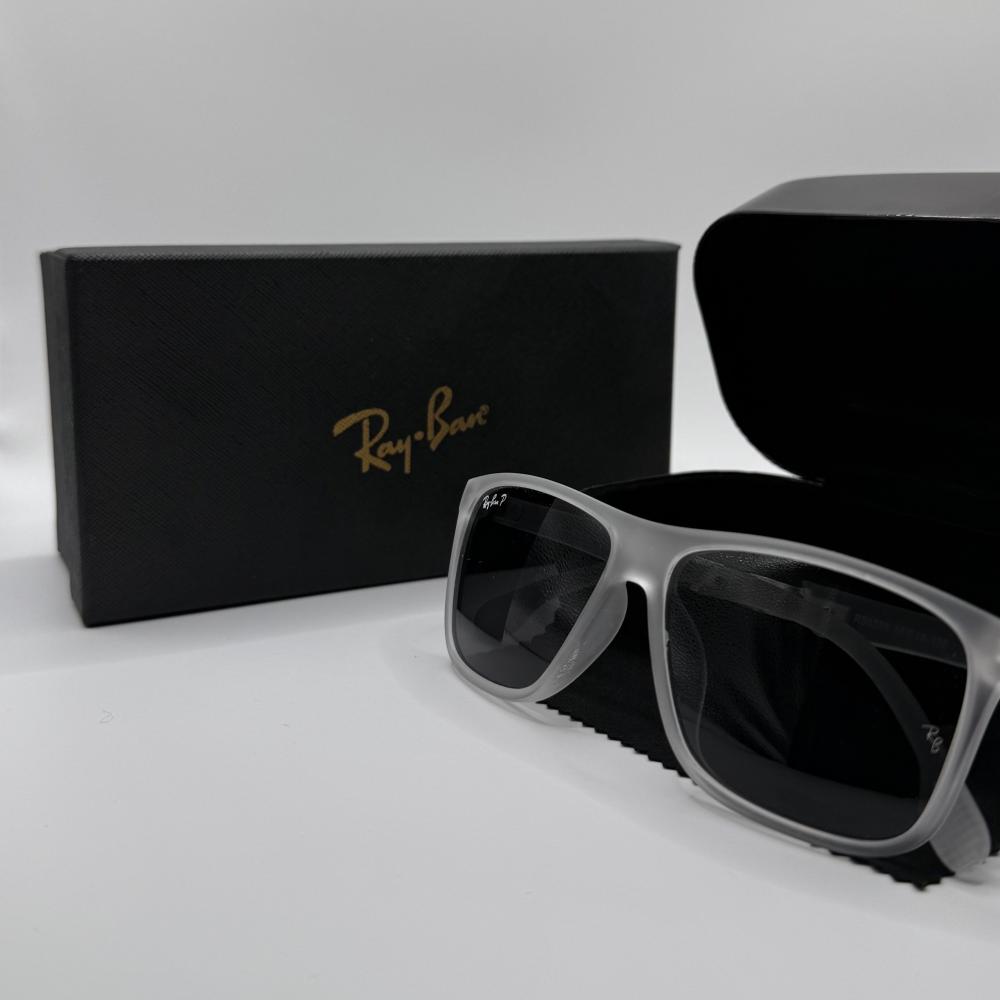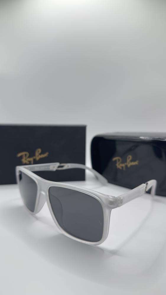 نظارة شمسية بتصميم راقٍ من Ray-Ban – عدسات سوداء متدرجة وإطار فضي فاخر.
