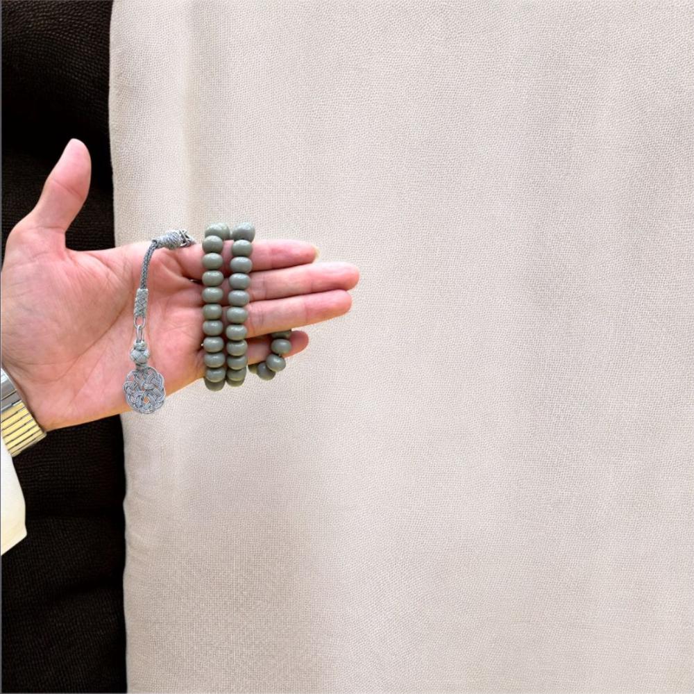 تُصنع المسبحة من أحجار الكلايت الطبيعي، الذي يُعد من الأحجار الروحانية ذات الخصائص الفريدة، والتي تعزز من التركيز، وتُشجع على الاسترخاء والهدوء النفسي. الأحجار مختارة بعناية لضمان جودتها، وتُعالج بطريقة تحافظ على لونها الطبيعي ولمعانها الأصلي.